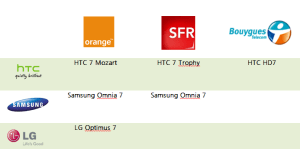 C’est Orange qui dispose de la gamme la plus complète avec le HTC 7 Mozart, le Samsung Omnia 7 et le LG Optimus 7.